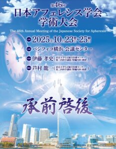 2025年10月23日(木)~25(土)の3日間、パシフィコ横浜において、第46回日本アフェレシス学会学術大会が開催されます。詳しくは、特設ホームページでご確認ください。